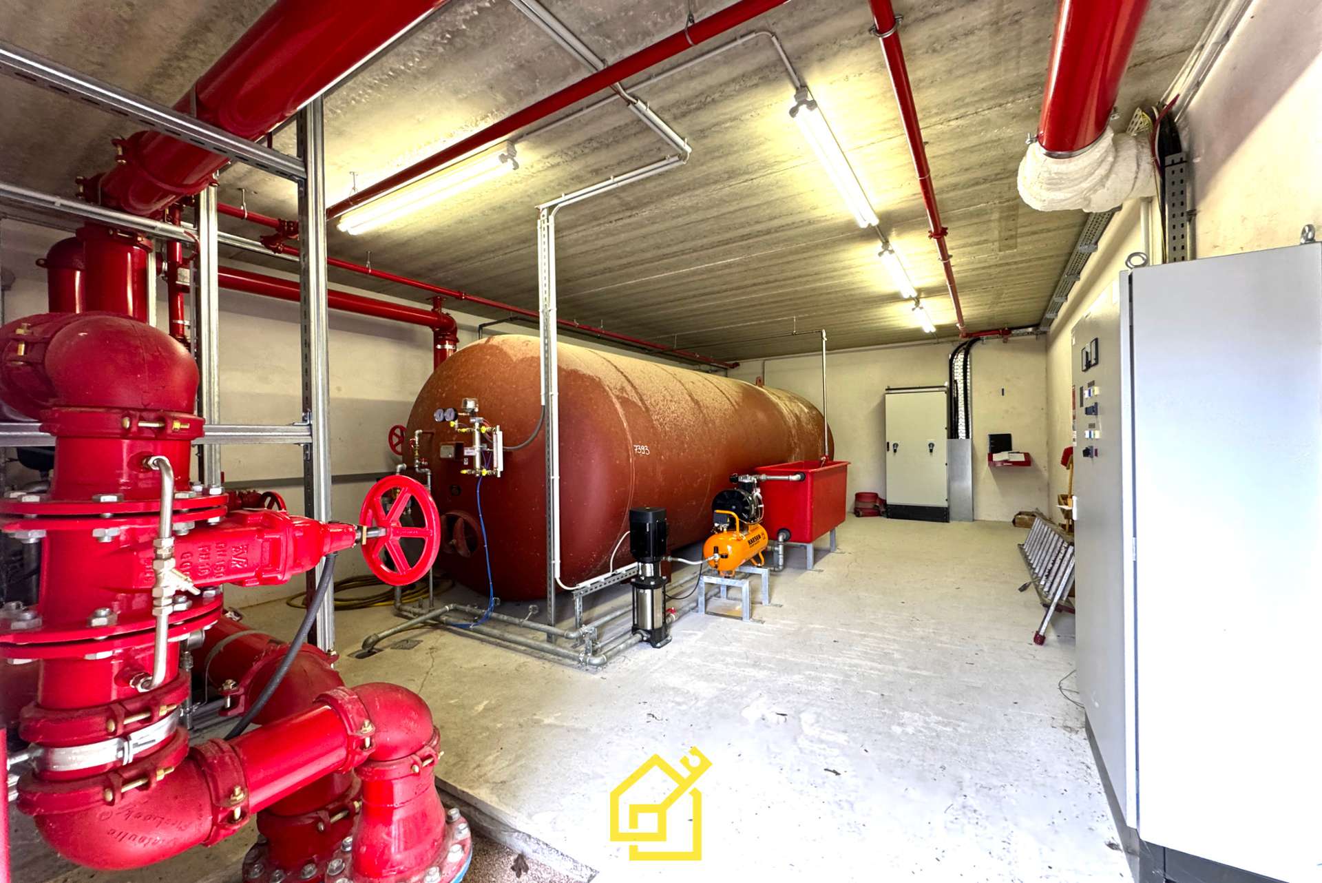 (Sprinkleranlage, Löschwasserbehälter, Brandmeldeanlage,